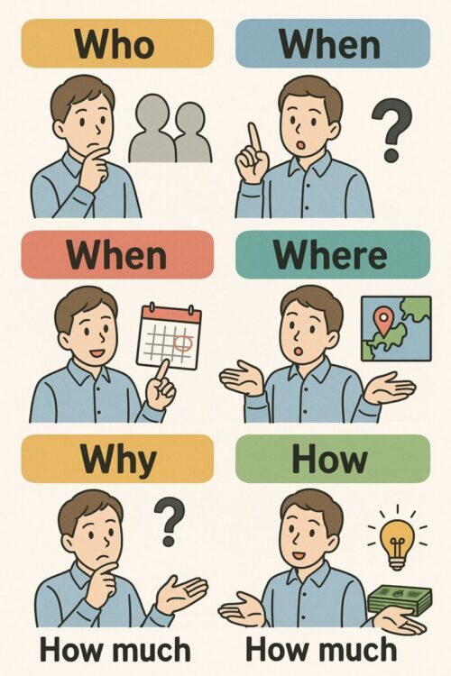 例:「金曜日18時までに(When)営業の田中さんが(Who)B社向けの提案資料を(What)メールで(Where/How)送る。その目的は、週明けの商談で活用するため(Why)」。このように情報を整理すると、認識ズレは激減する。