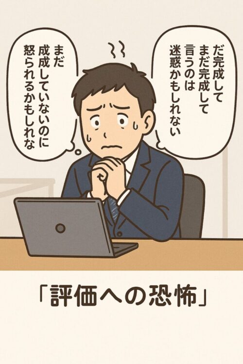 多くの人が抱えているのは、「今の状態で報告したら怒られるかもしれない」「まだ完成していないのに言うのは迷惑かもしれない」という“評価への恐怖”である。