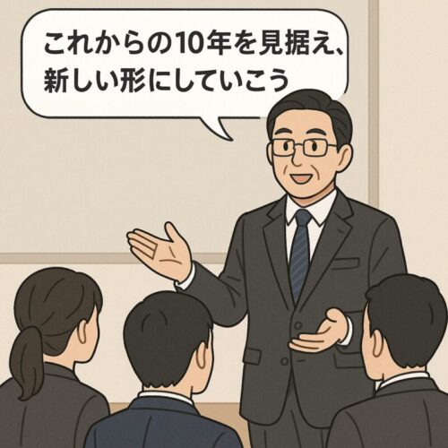 この誤解を避けるには、「過去のやり方を変える」ことが否定ではなく、“より良い未来への進化”だと伝える必要がある。「ここまで会社を支えてくれたやり方があったから今がある。その上で、これからの10年を見据えて、新しい形にしていこう」といった言葉には、過去を肯定したうえで変化を受け入れる余地がある。ポイントは、「何かを変える」という表現ではなく、「これまでの積み上げを“誰でも使える形”にする」という姿勢で向き合うことだ。