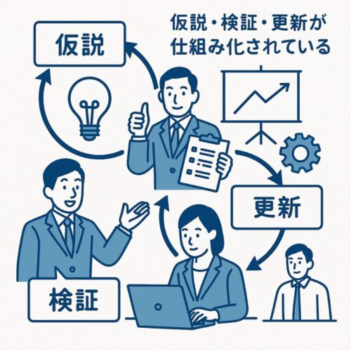 継続が力になるには、前提として「仮説」「検証」「更新」が仕組み化されている必要がある。逆に、やること自体が目的化してしまうと、組織の力を奪う存在になる。