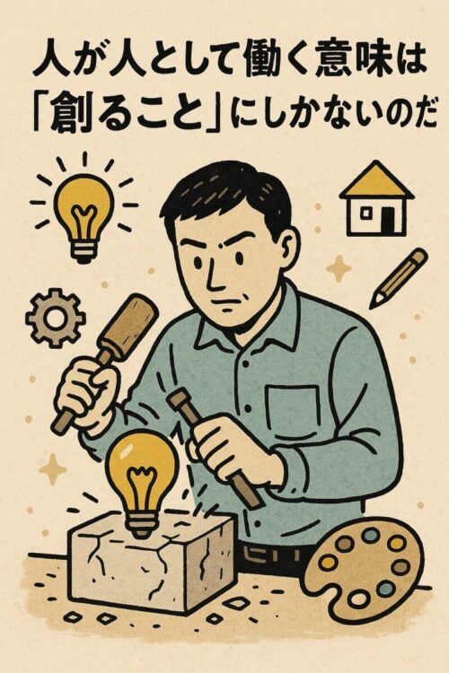 毎日同じ手順で、同じ報告書をつくる。決まった時間に出社し、指示された業務をこなす。これはもはや“人間”である必要はない。AIでも代替可能な仕事に囲まれた人材は、やがて自分の存在価値を見失っていく。ルーティン化された現場には、学びも成長もない。人が人として働く意味は「創ること」にしかないのだ。
