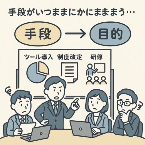 経営者が「こうしたい」「これをやろう」と言うのは悪いことではない。むしろ、組織にとっては必要不可欠な推進力だ。ただし、問題は「何を実現したいのか」よりも「何をやっているか」が主語になってしまうときに起きる。ツール導入、制度改定、研修実施といった“手段”が、いつのまにか“目的”になり、やり終えた時点で満足してしまうのだ。