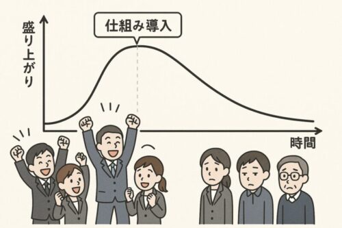どんなに優れた仕組みでも、「放っておけば形骸化する」。これは現場で何度も目にする現実だ。とくに中小企業では、仕組みを導入したときが一番盛り上がって、そこからは緩やかに使われなくなる。だれかが育てない限り、仕組みは成長しない。