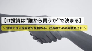 Security 【IT投資は“誰から買うか”で決まる】〜 信頼できる担当者を見極める、社長のための実戦ガイド 〜 IT導入で失敗しないためには「誰から買うか」が重要。中小企業の経営者が信頼すべき担当者の見極め方を徹底解説。 2025.09.21 Security